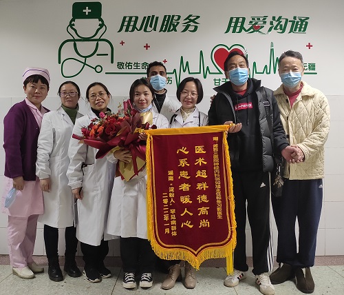 患者激动地为张如旭及医院领导送上锦旗