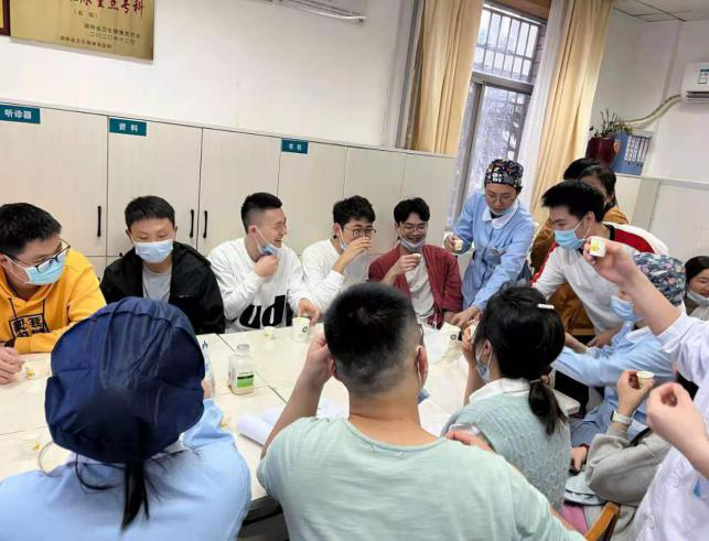 “原来营养支持对重症病人这么重要啊!”“一碗粥和鸡汤根本就满足不了病人的身体需要啊!”“这种营养剂可真难喝”。“试试这款,味道不错!”……培训现场异常热闹,仿佛正在举办一场美食汇,大家忍不住齐声吆喝:“干杯!”试喝完不同的营养剂后大家纷纷说出了自己感受。之后,现场还做了有趣的小实验——观察不同的肠内营养剂加入氯化钾、硫酸镁后是否存在反应。