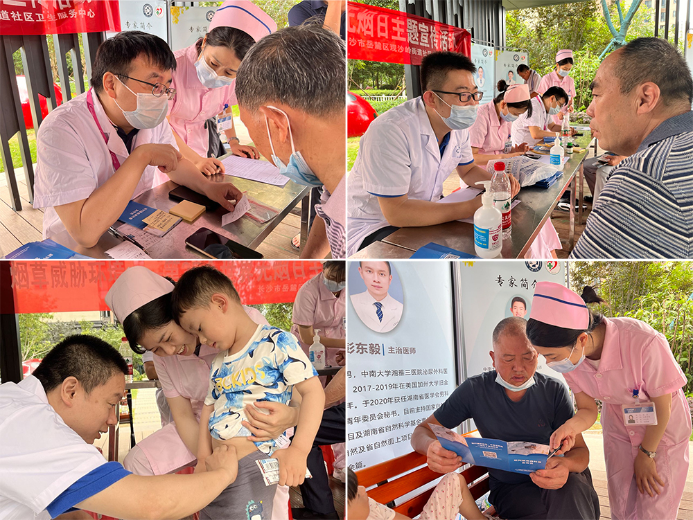 6月17日周五上午,泌尿外科党支部义诊团队来到湘江西岸的观沙岭街道公园里社区开展主题为“感恩父爱,从关注健康开始”大型公益义诊活动。前列腺癌位列男性第二常见的恶性肿瘤,但是出现症状大部分为晚期,已失去手术机会。提高治疗效果的关键在于早诊断早治疗,因此前列腺癌普筛极为重要。为此泌尿外科与观沙岭街道卫服中心、观沙医院进驻社区进行联合公益义诊活动。