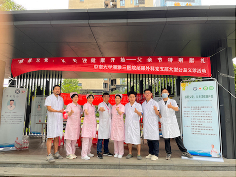 在2022年父亲节来临之际,中南大学湘雅三医院泌尿外科团队于6月17日、18日分别在院内外开展一系列公益活动。本次父亲节公益活动旨在通过义诊和科普宣传,普及男性疾病科普、早期前列腺癌筛查等健康知识,让更多的健康生活理念深入千家万户,唤起“老”父亲们对自身健康的关爱,唤起儿女对父亲的关心。
