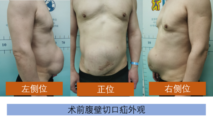 据悉,今年58岁的张大爷2年前在外院行“全腹膜外腹股沟疝修补术(TEP)+脐疝开放修补术”,因术后发生“粘连性肠梗阻”而行“切口裂开缝合及脐疝修补术”,不幸的是术后再次出现腹壁切口疝,特别是长时间站立或咳嗽时腹壁切口处会慢慢鼓出一个大包,甚至引起腹部隐隐作痛、消化不良等症状,严重影响其日常生活,且随着时间的延长腹壁切口疝越来越大(30×20cm)。患者为此辗转多家医院,均因手术难度大、风险高被医生拒绝行手术治疗。最终,患者及家属求助于湘雅三医院胃肠外科疝专科,朱晒红教授、朱利勇副教授、易波副教授、李伟正主治医师经过反复讨论并启动MDT模式。消化内科、放射科、麻醉科、病理科、ICU团队成员充分讨论后,最终为张大爷制定了采用机器人援助操作腹壁巨大复发复杂切口疝修补术。由于患者在外院已行多次手术治疗,术中探查发现右下腹有肠粘连、与腹壁粘连,予以松解粘连,同时发现距回直部约30cm左右可见小肠走形迂曲折叠、粘连致密无法与腹壁分离,遂决定切除该段肠管,并切除部分大网膜进行腹腔减容,预防腹腔间隔室综合征。患者手术顺利,术后第一天就可下床活动,术后第五天进食,术后第七天出院,术后恢复满意。