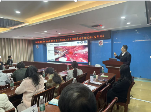 12月20日,由中南大学湘雅三医院肝胆胰外科二病区主办的“肝胆胰疾病诊疗巡讲会”在岳阳市人民医院举行。此次巡讲由余枭主任牵头组织并担任主席,医院知名专家聂晚频教授及岳阳市人民医院肝胆胰外科主任朱卫东担任联合主席。会议汇聚了来自岳阳市人民医院、岳阳市中心医院、邵阳市人民医院、浏阳市人民医院及岳阳市各县区医院的多家区域医疗机构专家,围绕肝胆胰疾病的最新诊疗进展与临床实践展开深入交流与探讨。