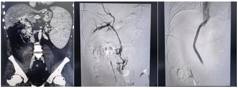 “没有通道,我们就为生命开辟一条通道。”面对患者与家属的殷切期盼,梁琪带领吴作为、骆雷等核心团队成员毅然迎难而上。术前,团队反复研读影像学资料,全面评估血管条件与手术风险,制定了周密的个体化手术方案。术中,团队凭借深厚的介入诊疗功底,沉着操控、精准穿刺,在闭塞多年的血管中耐心探查、精细开通,成功将支架置入门静脉主干并建立肝内分流道,显著降低门静脉压力,从根源上解除致命大出血风险,实现微创、安全、高效救治,疗效远超家属预期。
