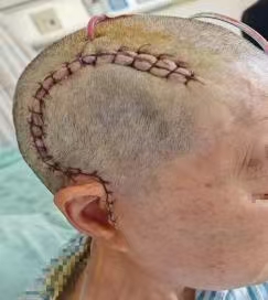 手术中,团队以“绣花”般的精细操作,在鼻内镜的辅助下,沿着病变边界小心翼翼地清除坏死组织,在毫米级的空间内精准保护颈内动脉、视神经等关键结构,成功为患者“拆除”了潜伏在颅内的“定时炸弹”。更具突破性的是,团队摒弃了传统人工材料修复方式,采用自体带血管蒂颞肌瓣转移修复技术,通过“取己之材,补己之缺”的方式,将患者自身血运丰富的颞肌组织精准转移并覆盖在颅底巨大缺损处,重建起一道密闭、坚固的生理屏障。这一技术不仅完美解决了颅底重建难题,更凭借自体组织高存活率、强抗感染的优势,从根本上杜绝了脑脊液漏、感染致颈内动脉大出血等致命并发症,为患者的安全康复筑牢了双重防线。