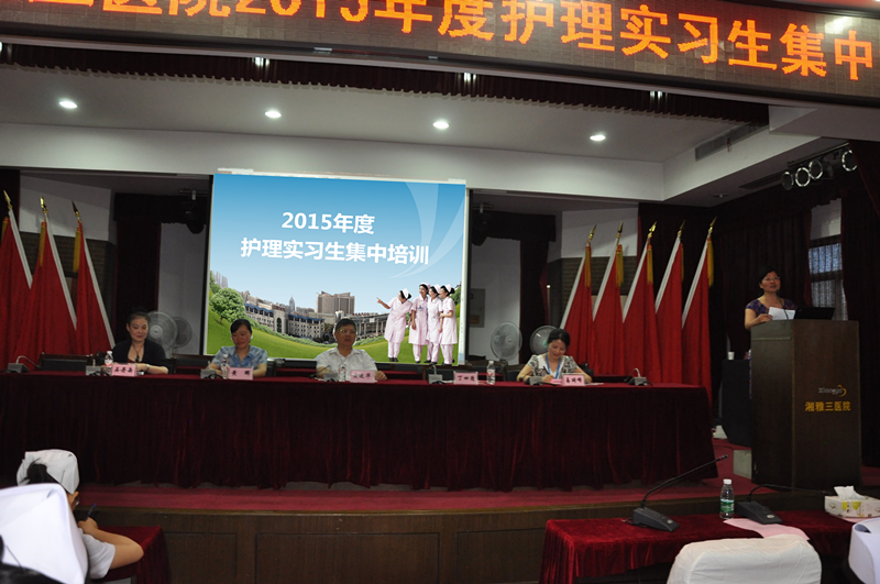 7月16日,我院2015年度护理实习生集中培训正式启动。副院长黄进华教授、护理部丁四清主任、手术中心石丹岳老师、2014年度实习生代表及2015年度335名护理实习生参加本次仪式。