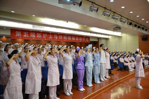全体新护士站在南丁格尔画像前,高举右手,在新护士易杨梦妮的领誓下宣誓:“余谨以志诚,庄严宣誓,终身纯洁,忠贞职守……”,表达了新护士立志继承发扬南丁格尔无私奉献伟大精神的信念。医院护理宣传片《天使之歌》和励志短片《人生不设限》,再次掀起新护士澎湃的心潮和精神的震撼!