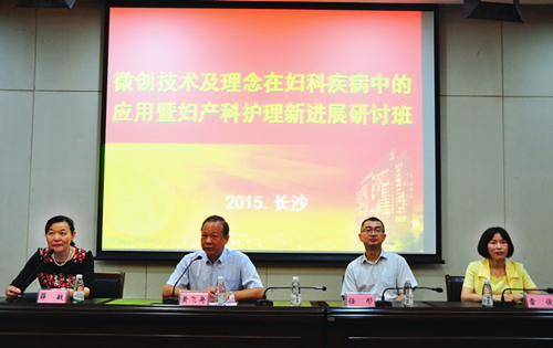 9月19日-20日,中南大学湘雅三医院妇产科成功举办了第十届国家级医学继续教育学习班“微创技术及理念在妇科疾病中的应用”【项目编号2015-05-01-089 (国)】研讨会暨妇产科护理新进展培训班【项目编号2015-14-03-025(国)】。会议邀请了上海交通大学医学院附属仁济医院刘开江教授,北京协和医院任彤教授,第三军医大学西南医院徐惠成教授,浙江大学医学院附属妇产科医院院长林俊教授,中南大学湘雅三医院薛敏教授、万亚军教授等国内妇科微创领域知名专家进行现场手术演示及相关学术讲座。护理专家湖南省人民医院副院长秦月兰主任护师、湖南省妇幼保健院护理部主任曾淑贤主任护师、湖南省肿瘤医院护理部副主任刘翔宇副主任护师及湘雅三医院夏爱斌、雷俊、向亚利、彭红缨等专家分享了围产医学及妇产科护理研究与实践的新进展。中南大学湘雅三医院副院长黄飞舟教授到会致辞。