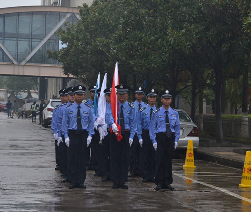 早上7:20,国旗护卫队在做最后的准备,综合楼前坪已经聚集了很多人,大家撑着伞等待那庄严的一刻。早上7:30,升旗仪式拉开了帷幕,大家整齐列队,十二人组成的国旗护卫队,迈着雄健整齐的步伐,挺进人们视野。众人期待已久的《义勇军进行曲》雄壮响起,全场观众挺直身板,注视着鲜艳的五星红旗冉冉升起。之后,升红十字会会旗和湘雅三医院院旗时,大家齐声合唱《团结就是力量》,显示着湘雅三医院这个大家庭团结的力量,参加仪式的职工代表,有些裤脚已经全部打湿,但仍然坚守着。细雨依旧绵绵,如丝般将大家的心交织在一起,敬献伟大祖国母亲。