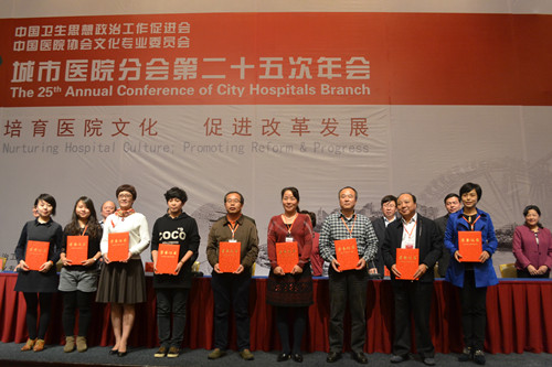 10月24日,中国卫生思想政治工作促进会、中国医院协会文化专业委员会城市医院分会第二十五次年会在兰州召开,此次会议以“培育医院文化,促进改革发展”为主题,湘雅三医院在城市医院分会五项表彰内容均有获奖,全面开花。湘雅三医院荣获全国城市医院思想政治工作先进单位,同时,获得“两个第一”,获得一类课题1项,这是全国城市医院立项课题的最高奖项,以论文提交数量第一的成绩获得城市医院分会2015年度论文组织奖。