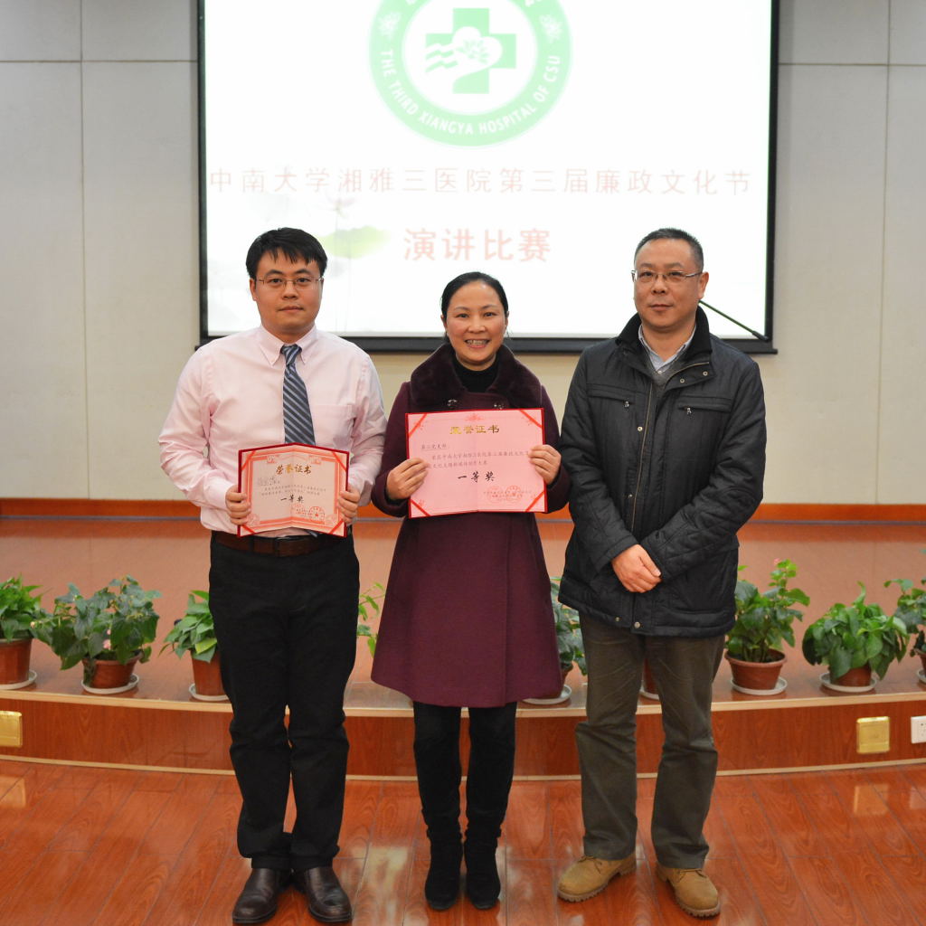 12月24日晚7点,湘雅三医院“第三届廉政文化节” 演讲比赛暨闭幕式在外科楼二楼多功能学术报告厅举行。中南大学纪委副书记唐忠阳,院领导罗爱静、陈方平、吴希林、邓云龙、杨飞龙担任评委。