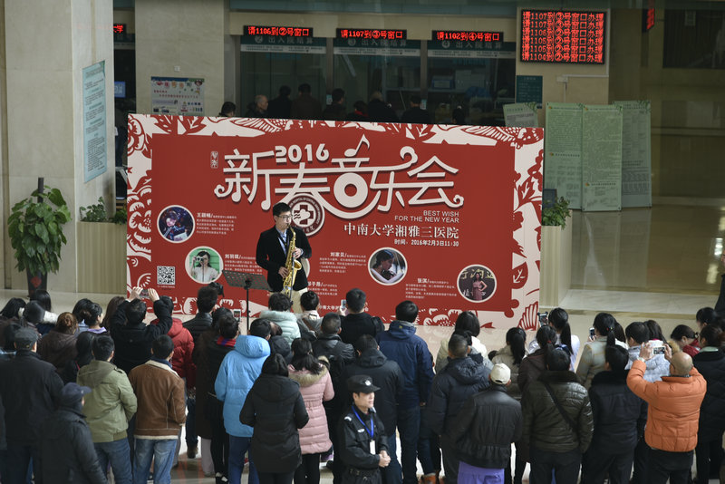 2月3日上午,中南大学湘雅三医院新春音乐会在外科楼大厅精彩上演,团委带领医院多才多艺的音乐精灵们给大家带来了一场视听盛宴!医院党委罗爱静书记、吴希林副书记出席了音乐会。