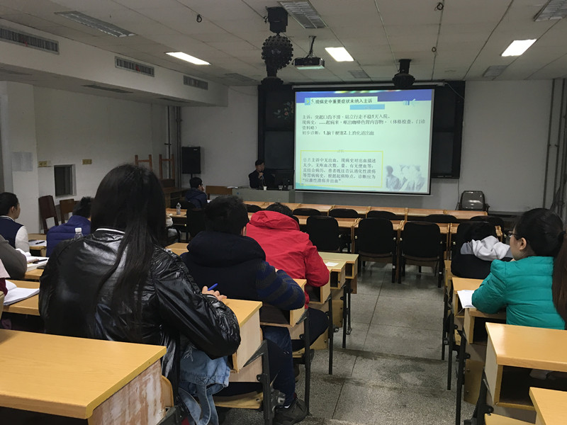 课堂上,王主任详细介绍了病历书写的基本规定、深入浅出地讲解了规范要点,认真剖析了病历书写过程中常见缺陷,通过点评缺陷病历,使大家结合临床实际学习了怎样书写病历,如何避免常见的病历书写错误,提高病历质量与内涵。课堂气氛活跃,学生们聚精会神,认真笔记,积极提问,与王主任展开了热烈的互动。
