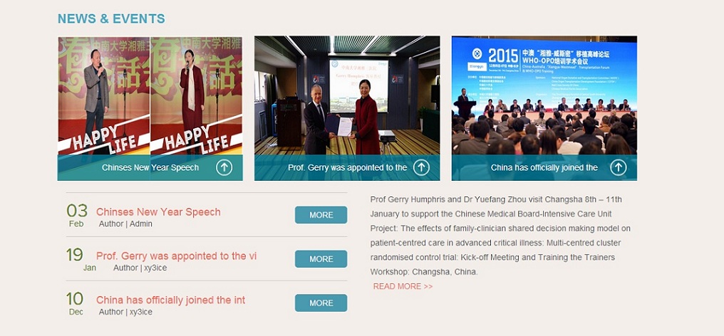 国际交流部在半年多的筹备过程中,坚持“扎根三院,博采众长”八个字,既立足医院办院理念、发展战略、服务特色,同时大量吸取国外知名医院网站的优点,网页设计力求高端大气、接轨国际、特色鲜明。在日新月异的新媒体时代,通过建设湘雅三医院英文官网,向世界介绍三院,推广三院,吸引海外精英,使网站成为助力我院国际化战略的有效工具。