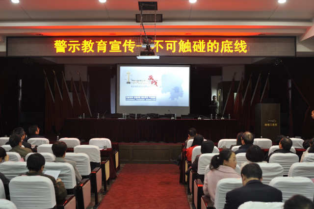 4月7日,为进一步筑牢医院党员干部职工拒腐防变思想道德防线,加强党风廉政建设,根据学校统一部署,医院纪委(监察)办组织全体院领导、行政职能部门正副主任、党群部门正副主任及党支部书记、各教研室临床医技科室正副主任、正副护士长集中观看了《不可触碰的底线——衡阳破坏选举案警示录》警示教育片。