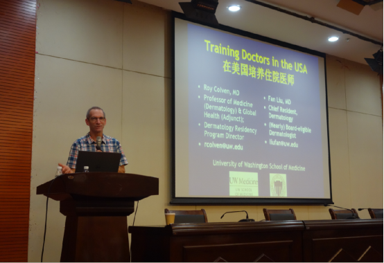 4月14日,美国华盛顿大学皮肤科教学主任、华盛顿大学附属医院Harborview Hospital皮肤科主任Professor Colven Roy 和Fan Liu医生来我院指导住培及皮肤科工作。