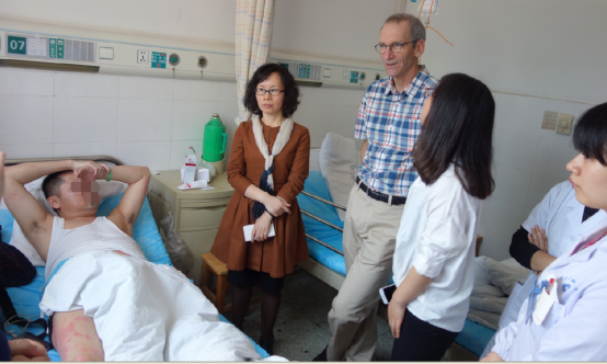 讲座后,Professor Colven Roy一行来到皮肤科门诊坐诊和鲁建云教授一块为皮肤科患者答疑解惑。随后,到皮肤科病房指导疑难病例,认真细致地听完我科住院医生的病例报告后,仔细地询问病人的病史,在全面了解病人情况后组织医生们进行讨论,提出了一系列治疗方案。