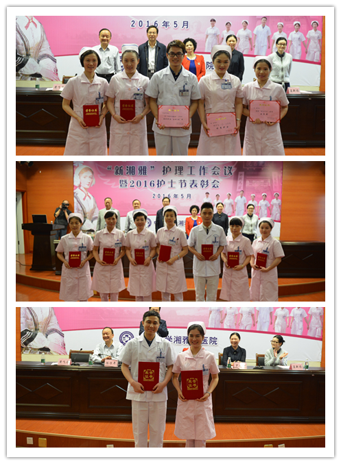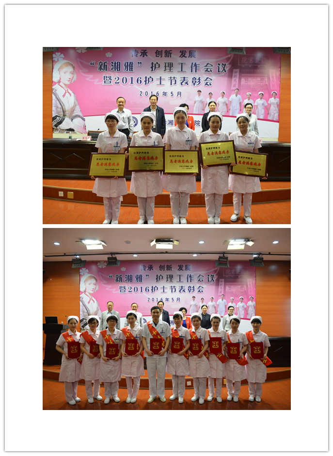 医院党委罗爱静书记宣读了关于表彰“患者满意病房”、“十佳护士”、“优秀护士”等先进集体和优秀个人的决定。同时,特别祝贺我院ICU护士李伟荣获湖南省“护士日记”征文一等奖;移植科三十六病区刘巧荣获湖南省“专科护士能力提升专题汇报”二等奖。与会领导为获奖集体和个人颁发荣誉证书。