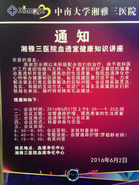 据悉,本次讲座是继上周龙春姣医师向广大血液透析患者以及家属讲解透析患者高磷血症的预防和治疗方之后,再次举办血液透析病友健康知识讲座。