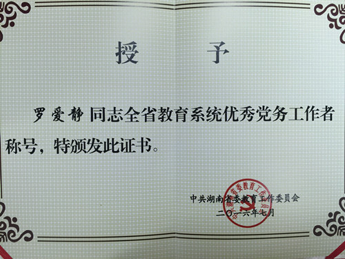 此外,医院党委多次受到上级党组织的表彰,在中国共产党成立95周年之际,中南大学湘雅三医院党委书记罗爱静被省委教育工委授予全省教育系统优秀党务工作者。