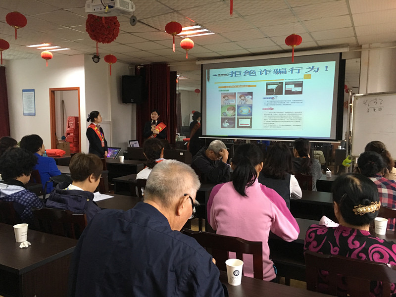 课堂上,渤海银行的工作人员从诈骗的常用手段和途径入手,结合真实案例,图文并茂的为老同志们介绍了有关电话冒充熟人诈骗、短信中奖诈骗、保健品推销诈骗、金融理财诈骗、免费旅游诈骗等多种形式的诈骗伎俩,提醒老同志在面对形形色色的骗术时,一定要保持头脑冷静,特别是网络诈骗要做到“四不两要”:不给陌生人汇款,不给陌生人验证码,不扫不明二维码,不接受遥控操作;要核实,要报警。这样即可看清骗子伎俩,远离诈骗。