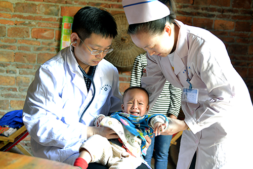 在长山村,扶贫博士团为当地儿童做了免费体检,对儿童先天性心脏病患者予以筛查与免费救治,走进抗美援朝老兵与听力迟缓患儿家中送去了药品和慰问金,并对当地村民进行了集中义诊。医疗团还通过远程会诊系统与位于长沙的湘雅三医院内分泌科胡平安博士联通,对身患糖尿病、脑梗死、意外烫伤等疾患,当地医院诊治难度较大的49岁水子村村民李强进行了诊疗,提出了针对性治疗方案。