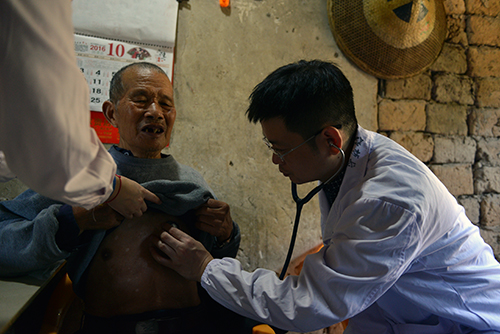 “感谢党和国家,感谢湘雅三医院,感谢省里来的专家到家里关心我……”参加过抗美援朝、曾荣立三等功的长山村村民吴嗲嗲在从湘雅三医院第二党支部书记苏莉手中接过慰问金与药品并接受了陈志衡副主任医师的诊治后激动地说。