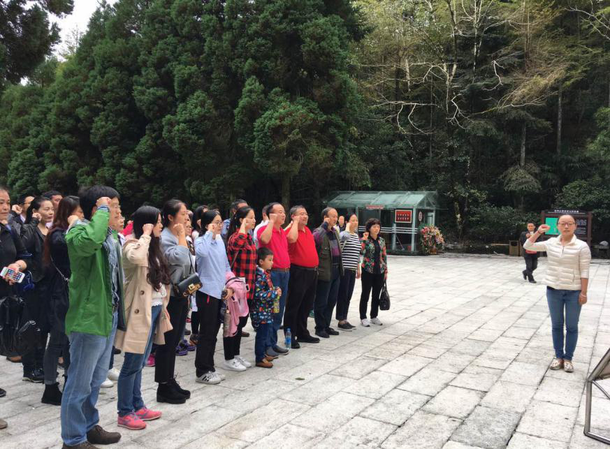 到达井冈山后,第一站就是井冈山革命烈士陵园。党员们面对党旗举起右手郑重宣誓。接着参观了陵园门庭、纪念堂、碑林、雕像园和纪念碑。