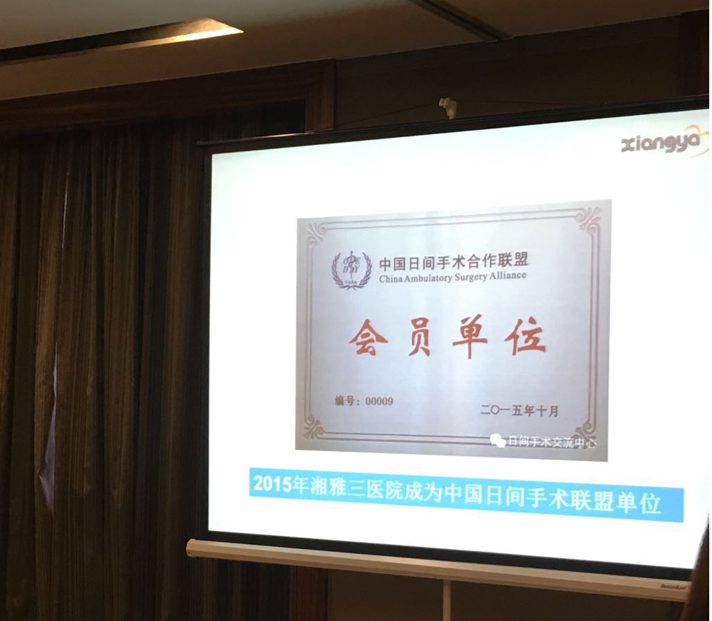 中南大学湘雅三医院作为第九家加入中国日间手术联盟的成员单位,并于2015年随中国日间手术联盟一起参加了在巴塞罗那举行的第十一届国际日间手术学术年会,在推动中国日间手术发展中必将发挥越来越重要的作用。