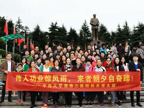 在纪念红军长征胜利80周年活动之际,湘雅三医院第九、第五党支部精心策划组织党员教育活动。10月29日,在院党委书记罗爱静的带领下,支部成员来到湘潭韶山、湘乡市,走访毛主席故居、陈赓故居及东山书院,追寻伟人足迹,感怀伟人生平,接受爱国洗礼。
