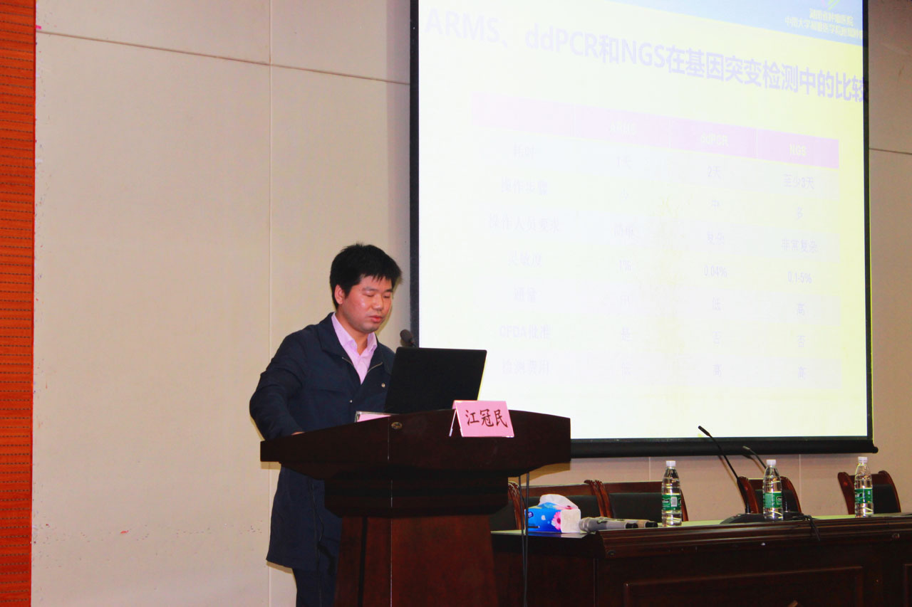 省肿瘤医院的江冠民副教授进行了“临床肿瘤基因诊断各检测平台的比较”的讲座。
