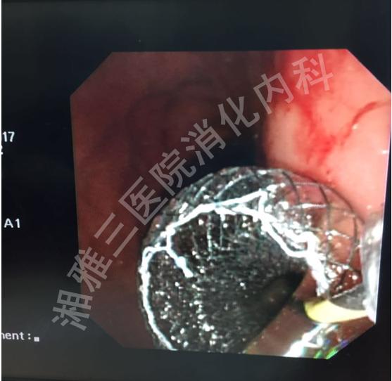 近日,我院消化内科超声内镜团队在王晓艳主任带领下成功完成湖南省首例超声内镜(EUS)引导下置放双蘑菇头金属支架引流胰腺假性囊肿。此项技术将新型支架替代以往的胆道金属支架,大大降低了支架移位的风险,并为进一步假性囊肿清创提供入路,标志着本学科EUS微创介入治疗更上一层楼。