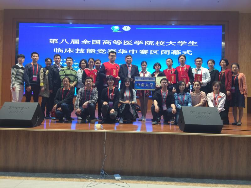 4月15日,第八届全国高等医学院校大学生临床技能大赛华中分区赛在湖北医药学院举行,来自湖北、湖南、河南等华中地区19所高等医学院校的20支参赛队伍,80名参赛选手集聚一堂、同台竞技。经过一天的激烈比拼,我院负责组队、培训的中南大学代表队荣获团体一等奖,并以初赛、复赛均第一名的优异成绩获得9个单项奖(共设置22个),顺利拿到5月份全国总决赛入场券。