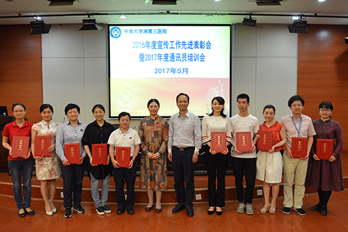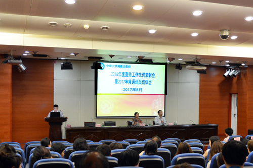 5月11日,中南大学湘雅三医院举办2016年度宣传工作先进表彰会暨2017年度通讯员培训会。党委书记罗爱静作题为《牢记使命、推出精品、融合发展、全员参与》的主题报告;党委副书记吴希林宣读《关于表彰2016年度宣传工作先进集体、先进个人的决定》,并就今年宣传思想文化工作提出新要求;人民网湖南频道总编辑林洛頫作题为《媒体需要什么样的新闻》的专题讲座。