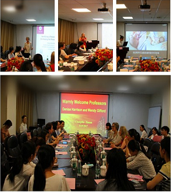5月19日晚,第十一期圆桌漫谈/Round Table Chats在外科楼19楼会议室如期举办。本期主题为“中加学者共话科研”,加拿大渥太华大学护理学院 Denise Harrison副教授和Wendy Gifford 副教授应邀担任主讲嘉宾,院办主任雷俊及临床医护人员、医学生约30人参加。会议由国际合作与交流部主任刘新春主持。