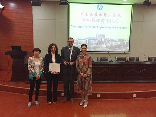 5月24日下午,挪威奥斯陆大学心理学专家兼国际学术期刊Patient Education and Counseling(社科类一区)主编Arnstein Finset教授, 意大利维罗拉大学心理学专家Lidia Del Piccolo副教授受聘为中南大学湘雅三医院客座教授。聘任仪式在外科楼2楼学术报告厅举行,院党委书记罗爱静为两位教授颁发了聘书,住培部主任姚晨姣、研究生部主任袁秀洪、护理部副主任严谨、科研部副主任谢文照及相关医护人员140余人参加了会议。聘任仪式由国际合作与交流部主任刘新春主持。