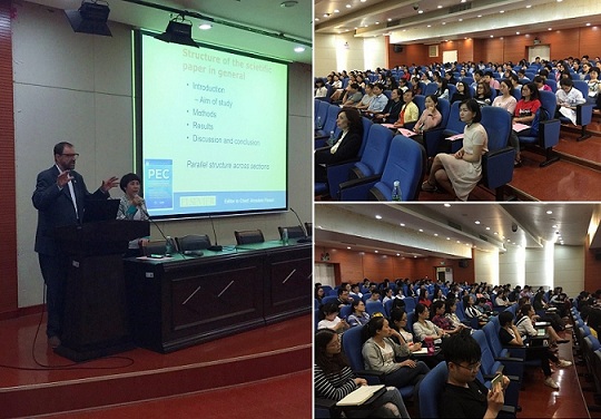 仪式结束后,Arnstein Finset教授就“如何在社科类JCR一区期刊——PEC上发表学术论文”做了精彩的学术讲座,并结合自己多年的期刊杂志评审经验对医患沟通领域内目前的研究热点和未来的研究趋势与大家进行了分享。参会人员就“如何写好一篇学术论文”以及“学术论文的结构”等难点积极提问,与Arnstein教授展开了热烈的互动。会上,Finset教授表示非常欢迎中国学者投稿PEC,并将对来自湖南长沙的投稿给予特别关注。