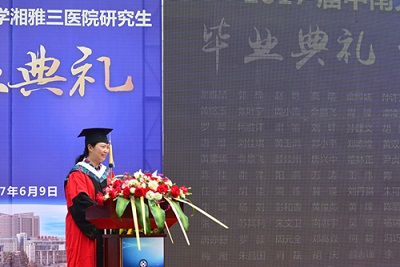 最后,陈方平院长作为院领导代表对全体毕业生发表了毕业祝辞,对所有导师、家长表示了衷心的感谢。对所有的毕业生提出了“学海无涯,不可以已”、“不畏艰辛,继续拼搏”、“坚守自我,感恩人生”的三点要求,希望每一位毕业生秉承湘雅精神,铭记历史使命与责任,在医学的道路上不断进取,成为让世界骄傲的湘雅人。
