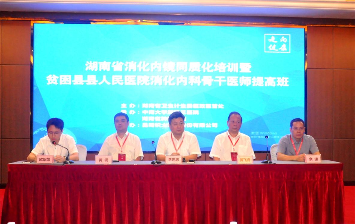 6月21-23日,由湖南省卫生计生委医政医管处主办,中南大学湘雅三医院消化内科及湖南省肿瘤医院承办的“湖南省消化道肿瘤诊治同质化培训暨贫困县消化内科骨干医师培训班”圆满结束,来自湖南省贫困县消化内科100余名主任和骨干医师参加了此次培训。会议以消化道四大恶性肿瘤(食管癌、胃癌、结肠癌、直肠癌)的早诊早治及规范胃肠镜筛查为主要内容,通过前期调研,采用“专家授课、内镜观摩、手把手教学、内镜图像解读”等形式。