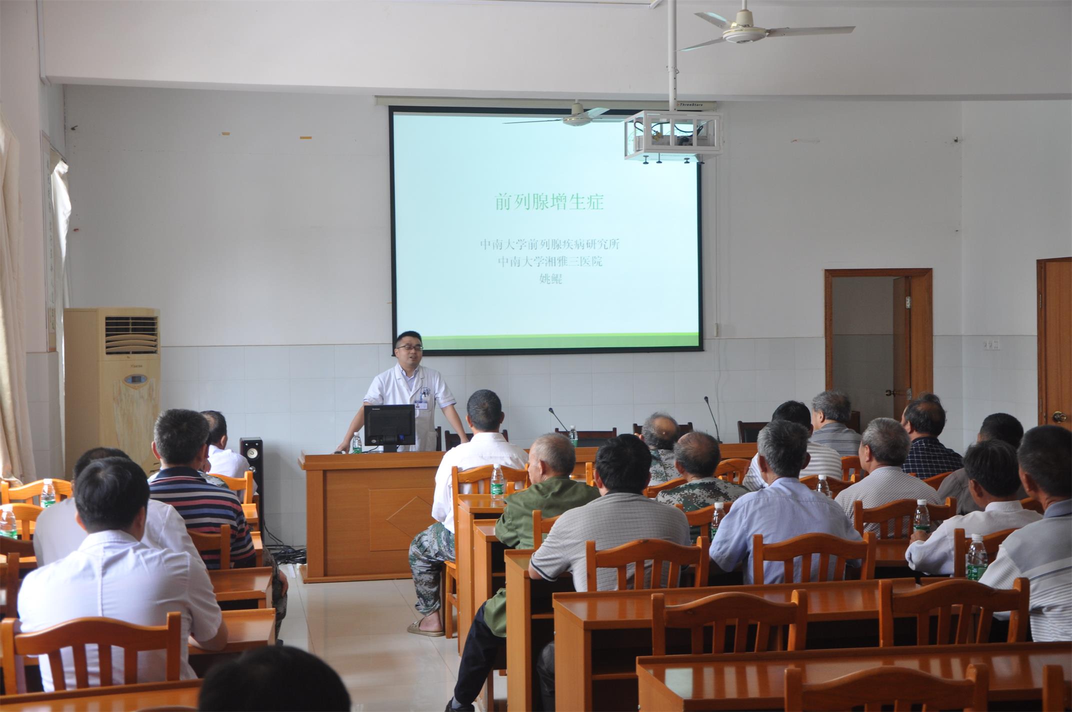 汤进副教授和姚鲲博士为军人们进行了健康宣教知识讲座,用深入浅出、通俗易懂的语言和极简的PPt,为伤残军人们讲解了前列腺癌和前列腺增生方面的健康知识,老兵们纷纷表示此次讲座特别受用。