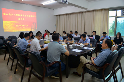 8月1日上午,湘雅三医院资助的第六批赴美留学八年制学生座谈会在综合楼一会议室举行。14名学生与医院签订了培养协议。院领导陈方平、黄进华,教务部、人力资源部、财务部、国际合作与交流部等相关部门派人参加了座谈会,会议由教务部余枭主任主持。