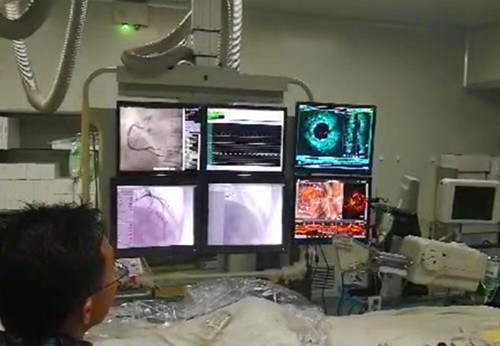 “这一技术就像直接把医生的眼睛放进血管里,顺着血管去飞翔,整个诊断过程清晰精准。”据曹宇介绍,3DOCT弥补了冠脉造影的不足,它可以识别包括正常血管、脂质斑块、纤维斑块、钙化斑块、易损斑块、血栓、夹层和内膜撕裂,可以精确评价远期支架植入后的内膜覆盖情况,支架内再狭窄、支架内斑块、晚期贴壁不良、晚期血栓等,这些指标对于评价支架的性能、支架术后的愈合都具有重要的作用。该项技术与IVUS结合,对探究冠心病发病机制、优化冠心病经皮冠状动脉介入治疗具有重要临床意义。