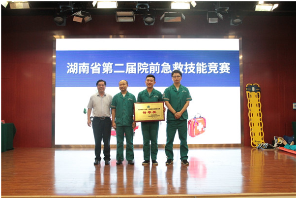 学术活动期间,在8月25号下午两点半,湖南省院前急救专业委员会还举办了湖南省第二届院前急救技能竞赛,也是省内首次开展的情景模拟比赛。湖南省医学会朱建华秘书长作为特邀嘉宾宣布本次比赛开始。此次技能竞赛共有分别来自全省各地州市的13个代表队参加比拼。竞赛场上,参赛队员准备充分,配合默契,经过激烈的角逐,最终常德代表队获得特等奖,湘潭和岳阳代表队并列一等奖。