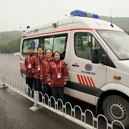 湘雅三医院在急危重症主任杨明施、120急救中心主任刘作良指导下成立了由ICU赵尚平医生、邹向丽医生及120护士康晓艳及司机潘霖组成的ECMO急救团队,将ECMO移至赛事现场,积极做好医疗救治准备工作 。