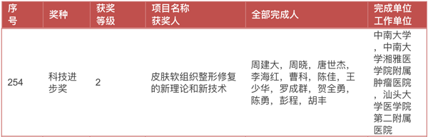 12月1日,教育部科技发展中心发布了《2017年度高等学校科学研究优秀成果奖(科学技术)授奖项目公告》。由中南大学湘雅名医、湘雅三医院整形外科主任周建大教授领衔的团队荣获2017年高等学校研究优秀成果奖(科学技术)科技进步奖二等奖。这是中南大学湘雅三医院首次获得该奖项,也是继2017年华夏医学科技奖之后,周建大教授团队获得的又一重大奖项。