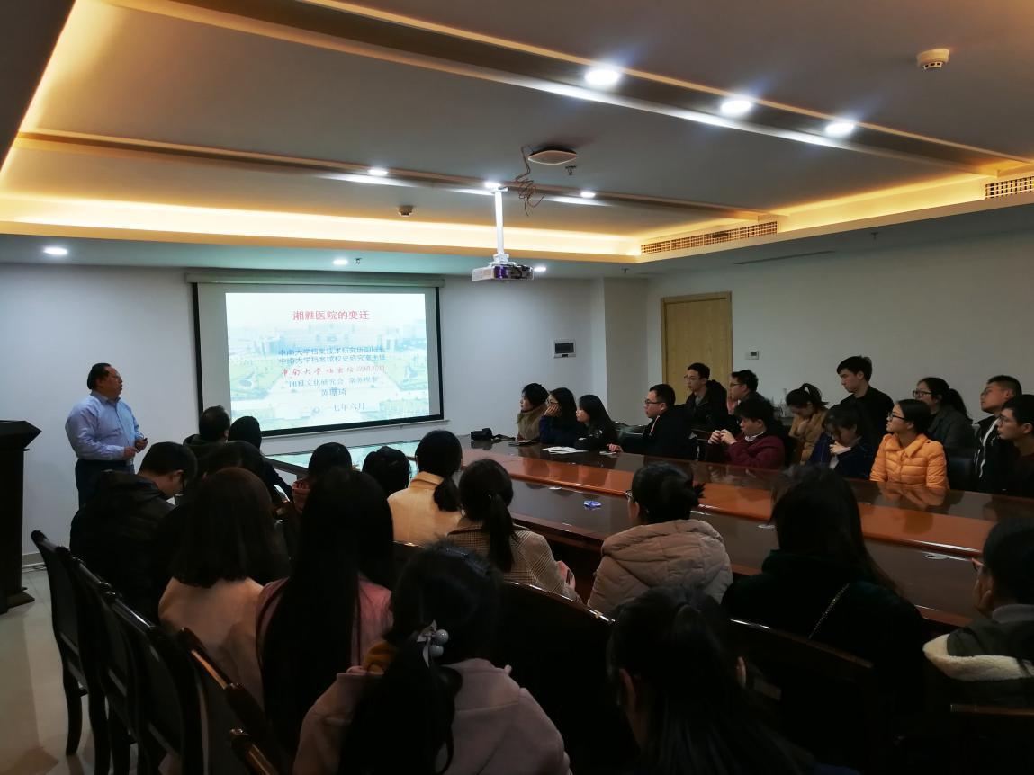 黄珊琦副研究员讲述了西医传入中国与湖南的梗概、湘雅的缘起、院址的变迁及性质的演变、湘雅与名人的故事等,史料详实,图文并茂,充分展示了老一代湘雅人的“公勇勤慎,诚爱谦廉,求真求确,必邃必专”的湘雅精神,以湘雅文化给在座的每一个湘雅学子带来了归属感和自豪感,并鼓励住院医师传承和发扬湘雅精神。