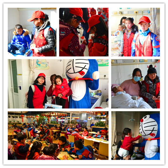 第二届微心愿认领活动收集到30个住院患儿的新年愿望,由志愿者们认领,一对一帮助完成,大家带着精心准备的礼品,跟随工作人员扮演的机器猫一起到病房,看望住院患儿,送上温馨祝福。