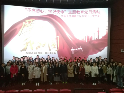 为深入了解、学习党的十八大以来中国的发展、成就以及党的十九大精神,进一步增强“四个自信”,教育引导党员“不忘初心、牢记使命”,3月9日中午,第十一党总支组织各党支部党员集中观看大型纪录电影《厉害了,我的国》。研究生部、住院医师培训部全体教职工及研究生、住院医师党员共计一百余人参加观影活动,此活动为第十一党总支开展“不忘初心、牢记使命”主题教育党日活动的重要组成部分。