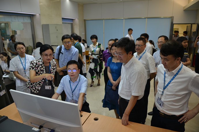 调研组实地考察了结算窗口并深入了解统一平台、统一标准、统一服务,让信息跑腿代替患者跑腿的大医保集成平台创新模式。随后召开的座谈会由省人社厅副厅长王运柏主持,王运柏副厅长简要介绍国家医保局调研组领导及与会代表,对人社部、国家医保局给予湖南医保的大力支持表示感谢,对湘雅三医院医保规范管理和信息化建设优异成果表示肯定。国家医疗保障局施子海副局长提出,目前全国各地医保信息系统差异性非常大且投入高,建立全国统一的医保信息系统是国家医疗保障局近期的主要工作,此次调研座谈会目的在于为全国医保业务标准化建设过程广泛听取意见,打好基础。