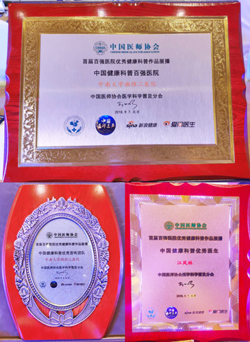 本次大会由中国医师协会主办、中国医师协会医学科普分会承办。评选活动历时近半年,全国共20个省市自治区近百家医院报名、400余位医生参展、1000余篇文章参加角逐。其中,中南大学湘雅三医院是“中国健康科普百强医院”奖湖南省唯一获奖医院,中南大学湘雅三医院江凤林副教授是“中国健康科普优秀医生”奖湖南省唯一获奖医生。