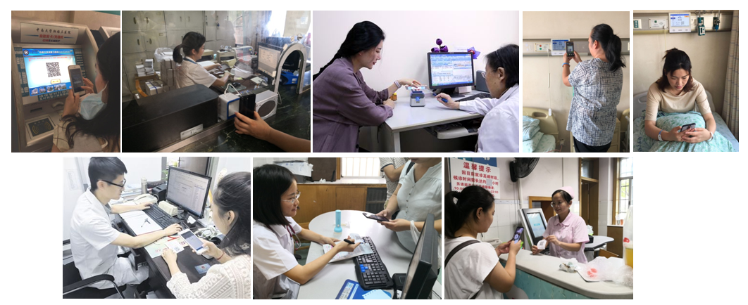 患者通过手机预约挂号成功后,可以扫码支付挂号费;随后,患者可以扫码取号前往指定科室就诊,待医生开具检验处方后,直接扫码支付,前往对应诊室检查;检查后取得报告,返回科室就诊,待医生开具药品处方后,可以直接手机支付,前往指定药房窗口取药,“门诊扫码看病”全套流程就走完了。如果需要住院,可以扫码支付住院预交金。